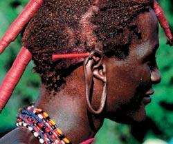 Народы традиционных культур подходили к этому виду пирсинга весьма изобретательно. Этнографы оставили нам множество прямо-таки устрашающих описаний. Тамилы Южной Индии , проколов уши ребенку, начинали расширять отверстие, вставляя туда тяжелые предметы до тех пор, пока мочки не достигали плеч. Сходным образом поступали коренные жители Соломоновых островов в Меланезии и мужчины африканского племени ндоробо. Индейцы-ботокуды Южной Америки внутрь, под кожу, нижней губы вживляли деревянный диск, отчего на лице появлялся «клюв». Аборигены Калимантана вставляли в уши увесистые украшения, а заодно выщипывали брови и ресницы, просверливали верхние резцы, делали в них медные заклепки, потом эти зубы чернили и затачивали.
