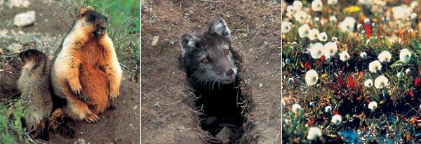 2. Летом песцы обитают на островах дельты. Эта самка встревожена появлением человека – в норе щенки