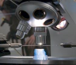 Специальные «иглы», установленные на управляемых компьютером микроприводах, используются для высокоточного разрезания аэрогеля, содержащего образцы кометного вещества