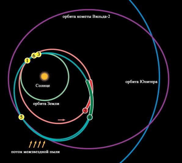 На первых двух витках вокруг Солнца до встречи с кометой аппарат дважды открывал ловушку для сбора образцов межзвездной пыли, а между витками сближался с Землей для набора скорости в гравитационном маневре. Чтобы снизить скорость столкновения с межзвездными пылинками, их сбор шел в периоды, когда аппарат летел в сторону, противоположную движению Солнца относительно соседних звезд. Встреча с кометой произошла через пять лет полета на третьем витке вокруг Солнца. При этом комета нагоняла аппарат со скоростью 6,1 км/с