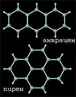 Основу полициклических ароматических углеводородов (ПАУ) составляют несколько сцепленных шестиугольных колец из атомов углерода. Присутствие очень небольшого количества антрацена и пирена (на рисунке) выявлено в межзвездной среде спектральными методами. В комете Вильда-2 также найдены молекулы ПАУ. Какие процессы приводят к их образованию, пока не вполне ясно Основу полициклических ароматических углеводородов (ПАУ) составляют несколько сцепленных шестиугольных колец из атомов углерода. Присутствие очень небольшого количества антрацена и пирена (на рисунке) выявлено Павел Шаров