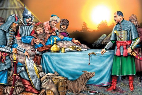 Тем не менее Ермаку удавалось удерживать Кашлык и отбивать рейды Кучума целых восемнадцать месяцев, а после – поднять изнуренное войско на новый поход. На сей раз атаман попытался прорваться в южном направлении. Сначала ему сопутствовал успех. Но в темную безлунную ночь с 5 на 6 августа 1585 года наученный горьким опытом хан, следивший буквально за каждым движением противника, совершил неожиданный налет на казацкий бивак. Полная тьма, накрывшая устье Вагая, левого притока Иртыша, и холм Атбаш («Лошадиная голова»), помогла атаковавшим разделаться с большей частью отряда. Правда, она же и помешала настигнуть тех, кто смог скрыться. Сибирские авторы записали местное татарское предание о последнем бое Ермака, весьма отличное от «канонических» российских версий, изложенных в Строгановской, Есиповской и Ремезовской летописях.