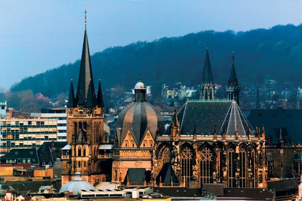 На протяжении своей долгой истории прославленный Карлом Великим Ахен не единожды менял «подданство». Одно оставалось и остается неизменным: на всех языках, будь то латинское Аквис гранум, германское Ахен или французское Экс-ла-Шапель, первый слог в названии города этимологически восходит к слову «вода». Горячие ключи, бьющие в маленькой воронкообразной долине между сланцевыми холмами, всегда служили главным источником обновления города. Он возвышался и приходил в упадок, горел дотла – и всякий раз восстанавливался краше прежнего.