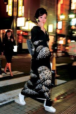 Занимаясь гинбурой, вы обязаны глазеть на толпу. Поражает, что в ней сосуществует сразу несколько Японий. Одетые по последней европейской моде люди идут вперемешку с теми, кто в кимоно и деревянных сандалиях гета (представьте себе Тверскую или Невский, где «прикиды» от «Версаче» соседствуют с сарафанами и кокошниками). Хотя «Европы» на Гинзе становится все больше, здесь иногда можно встретить даже учениц гейш – майко из соседнего квартала Нихомбаси. По традиции, опытные наставницы «рисуют» им ярким гримом «красивые» лица («дипломированная» гейша косметики не употребляет, на ее лице должно быть видно любое мимолетное изменение настроения)… Еще я видел посреди бела дня молодого человека, не имевшего на себе ничего, кроме кожаных трусов. А эскортировали его импозантные ассистенты в строгих фраках и белых перчатках. Впрочем, то, конечно, был перформанс художника-авангардиста, эпатирующего «сытую буржуазию».