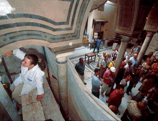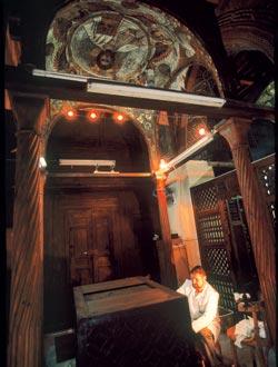 Но тут уж ничего не поделаешь: Эль-Муалляка – не музей, не археологический раскоп, а действующая церковь со своими традициями и надобностями, которую не закрывали на время проведения реставрации. Работать в алтаре на холодных каменных полах приходилось босиком: здесь принято снимать обувь. Реставраторы так и работали разутыми, пока им не купили... балетные тапочки. Незаметные на своих завешанных полиэтиленом лесах, мастера стали невольными свидетелями обычной церковной жизни. В первой половине дня здесь полно туристов, а экскурсоводы заливаются соловьями, порой рассказывая байки о том, как церковь «просветили рентгеном и обнаружили, что она относится к четвертому веку».