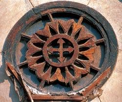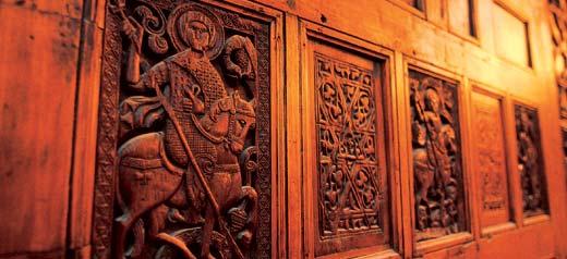 А вот резные орнаменты деревянной трехчастной алтарной преграды, исполняющей и функции иконостаса – по верху идет ряд икон, – на первый взгляд кажутся чисто мусульманскими. Изображение креста «зашифровано» в сложных геометрических узорах – восьмигранных звездах. В церкви была и фигуративная деревянная резьба, но дерево – материал более хрупкий, чем камень, и от узоров мало что осталось. Знаменитый фриз V—VI веков, изображающий «Вход в Иерусалим», где ангелы осеняют Христа пальмовыми ветками, когда-то украшавший вход в храм, давно убрали в музей. Чудом уцелела деревянная панелька предположительно IX века величиной с ладонь. Несмотря на недостающие части, на ней можно разглядеть фигуру святого – сейчас эта драгоценная дощечка вмонтирована в оклад одной из икон.