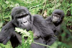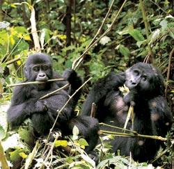 восточные горные (Gorilla gorilla beringei) живут в горах на высоте 1 650—3 800 м на границе Заира, Уганды и Руанды. Всего – около 600 животных ‚