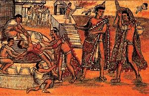 Практика жертвоприношения высшим силам была известна многим древним культурам – от вавилонян до греков: помимо закланных животных их алтари орошала и кровь человека. Однако нигде подобные жестокие ритуалы не достигали такого размаха, как у индейцев Мексики. Первыми свидетелями их кровавых действ стали испанцы-конкистадоры, с ужасом живописавшие местные обычаи. Начатую в испанских хрониках тему развили авторы приключенческих романов, создавшие образы «кровожадных индейцев», которые по природной злобности с радостью приносили в жертву как соседей, так и невинных белых чужестранцев. Можно, конечно, усомниться в правдивости таких описаний – слишком уж они были на руку завоевателям: раз индейцы – дикари и людоеды, то их, конечно, следует истребить или цивилизовать, в награду за старания присвоив себе их богатства. Однако многое из рассказов испанцев подтверждается этнографами, а найденные свидетельства заставляют неподготовленного современного европейца содрогнуться.