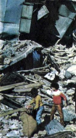 – Израильские «фантомы» налетели во второй половине дня 15 марта, – рассказывает он. – Я как раз возвращался с женой и детьми на машине из Бейрута. Самолеты сделали пять заходов. Сами видите, пилоты «работали на совесть»... Потом тель-авивское радио утверждало, что, дескать, в Узаи находились тренировочные базы палестинцев. Ничего подобного здесь никогда не было. Израильтяне специально бомбят населенные пункты, чтобы настроить нас, ливанцев, против палестинцев. Только все равно у них ничего не выйдет. Палестинцы – наши братья... – Хусейн Сальм хочет еще что-то сказать, но потом машет рукой и опять начинает копаться в развалинах своего жилища.