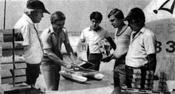 Тут же рядом, отстранившись от нашего разговора, возился с необычной моделью Вадим Евгеньевич Микитюк. Он крутил небольшую ручку, укрепленную на палубе модели, и ромбовидный парус, расправившись, поднимался вверх. Как только Вадим Евгеньевич покрутил ручку в обратном направлении, парус тут же сложился на верхней палубе,
