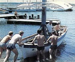 Как только парус был готов, шлюпка стала выглядеть очень необычно. Появились любопытные. Особое внимание проявляли яхтсмены. Такое они видели впервые.