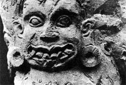 Глядя на это нагромождение всякой всячины, я обратил внимание на два существенных обстоятельства. Во-первых, соседствующие с улыбающимся Буддой демоны изваяны древними скульпторами, которые не были ни мусульманами, ни буддистами. Во-вторых, эти художники тоже изобразили длинноухих с широкими дисками в растянутых ушных мочках.