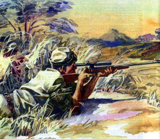 Все стихло, как будто буш затаил дыхание и чего-то ждал. И вдруг из подлеска, позади нас, беззвучно вышел ван Делден. С ним был Мукунга, оба держали в руках винтовки. По другую сторону дороги появились Мтоме и какой-то очень прямой симпатичный мужчина, которого я прежде не видел. Каждый нес по брезентовому рюкзаку и полному патронташу, плечи у них были обернуты скатанными одеялами.