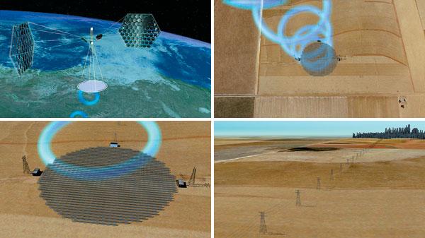 Проект космической электростанции компании Solaren включает солнечные батареи общей площадью почти квадратный километр и направленный СВЧ-передатчик (1).