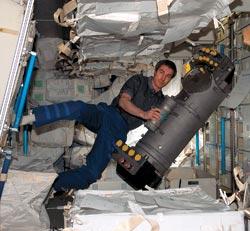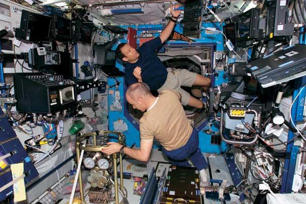 Астронавты налаживают систему дегазации жидкостей для биологических экспериментов в условиях микрогравитации в лаборатории «Дестини» на МКС. Фото: SPL/EAST NEWS
