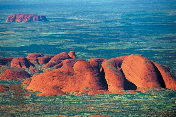 В самом сердце материка, в Национальном парке ЭрсМаунт-Олга, среди пустынного плато возвышается монолит красного песчаника Улуру – святыня аборигенов и самая необычная достопримечательность Австралии. Его высота составляет 348 метров, периметр – 9 километров. Рядом виден не менее знаменитый массив Олга, состоящий из 36 каменных куполов, изъеденных ущельями и долинами