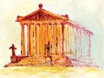 Примерно так выглядел знаменитый храм Аполлона в Дельфах, где пророчествовала известная всему греческому миру Пифия, в середине IV века до н. э., то есть примерно век спустя после Геродота. Однако и в его времена на склонах горы Парнас стояло грандиозное святилище, а уж когда оно возникло, не знал даже всеведущий историк