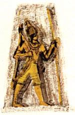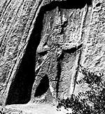 «Барельеф Сесостриса». «В Ионии… есть два высеченных на скале рельефных изображения этого царя: одно – на пути из Эфеса в Фокею, а другое – из Сард в Смирну. В том и другом месте это – рельефное изображение мужчины-воина почти в 41,2 локтя высотой; в правой руке он держит копье, а в левой лук…» Обратите внимание: почтенный автор в своем описании явно совершил ошибку, «перепутав руки». На рельефе довольно четко видно, что царь держит копье в левой, а лук в правой руке