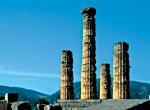 1.Центр древнегреческой религиозной жизни Дельфы расположены в уникально живописном месте – отсюда открывается вид одновременно на солнечную долину, поросшую оливами, Коринфский залив и горы Парнас. Ныне комплекс, некогда посвященный Аполлону, представляет собой развалины. Общая площадь его фундамента – около 60 метров в длину и 24 в ширину. Именно за этими дорическими колоннами, между которыми раньше стояли статуи Аполлона, Артемиды, Диониса и Лето