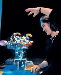Исследователь Синтия Бризил «общается» с роботом Кисмет. Последний был создан для изучения возможности мгновенного распознавания мимики и построения реакции в зависимости от настроения «собеседника»