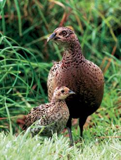 Как и другие куриные, фазанята сразу после вылупления начинают кочевать вместе с матерью по гнездовому участку в поисках корма