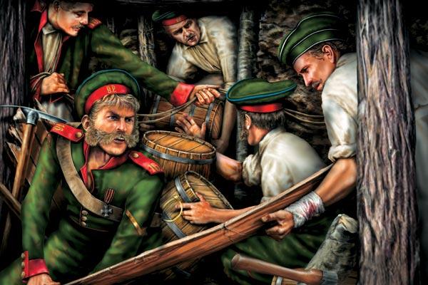 При слове «мина» многим представляется зарытый под землей взрывной боеприпас. Между тем происходит оно от французского mine – «рудник», «подкоп». В военном деле, как нетрудно понять, это слово закрепилось во времена осадных войн, а точнее – осадных работ при боевых действиях. Оттуда же, кстати, и французское «сапер», от saper – «подрывать», «подкапываться». Так, саперы рыли траншеи и подступы, а минеры подкапывались под стены. С появлением пороха в мины стали закладывать разрывные заряды. Постепенно мина стала обозначать взрывчатый боеприпас. Кроме фугасного использовалось и осколочное действие – с начала XVII и вплоть до начала XX века для защиты укреплений устраивали «камнеметные фугасы». Впрочем, в Китае разные варианты пороховых мин, включая подземные («Подземный гром»), применяли еще раньше, иногда создавая подобие минного поля, в котором мины подрывались почти одновременно. Взрывчатым веществом несколько веков оставался дымный порох. Надежный способ взрывания искали довольно долго, но существенный успех был достигнут в 1830-е годы с разработкой огнепроводного шнура У. Бикфордом в Англии и системы электровоспламенения К.А. Шильдером в России.
