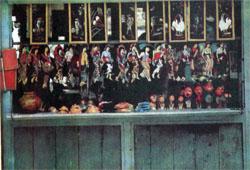 Небольшая лавчонка, в которой торговала, конечно, женщина, была открыта чуть ли не со всех сторон. Увидев нас, хозяйка приветливо приглашает зайти что-нибудь купить. Увы, ассортимент слишком скуден: слипшиеся от жары и давности конфеты, вяленая рыбешка с палец величиной, рисовые лепешки, плоды сахарной пальмы.