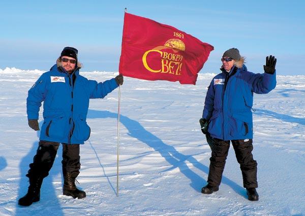 Виталий Плинер и Егор Быковский (справа) привезли флаг «Вокруг света» на Северный полюс