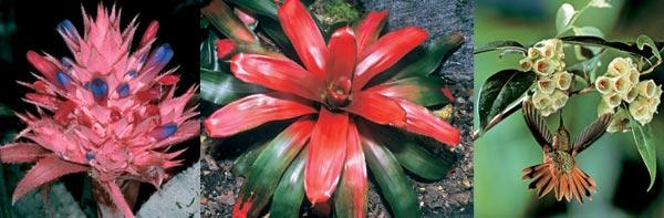 3. Растение Vaccinium poasanum ведет эпифитный образ жизни на верхних ярусах джунглей. Колибри пьют нектар из ее цветков и одновременно переносят пыльцу