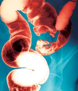 На рентгенограмме видно, что контрастное вещество (сернокислый барий) не может проникнуть ниже участка, перекрытого опухолью. Непроходимость – обычное последствие раковых заболеваний пищеварительного тракта