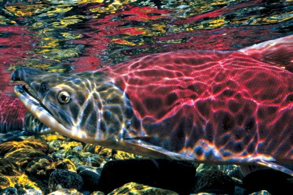 В пути нерка переживает значительные метаморфозы. Она совсем перестает есть, желудок, кишечник и печень перестают функционировать, активно работают только железы внутренней секреции, особенно гипофиз, а накопленные запасы жира и питательных веществ сосредотачиваются в репродуктивных органах. Изменяется и окраска. Серебристые с темно-синей спиной рыбы в брачный период становятся кроваво-красными с зеленой головой (именно поэтому нерка получила свое второе имя – красная). В то же самое время мясо их, наоборот, теряет цвет, становясь практически белым, водянистым и дряблым.