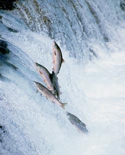 Гонимые инстинктом, нерки идут вверх по течению, преодолевая пороги, водопады и совершая 2—3-метровые прыжки