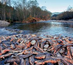 Во время массового хода берега рек, особенно в местах их сужения, превращаются в кладбища нерки