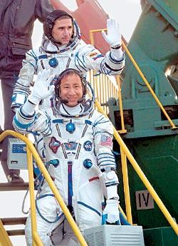 Космонавты на Байконуре перед стартом