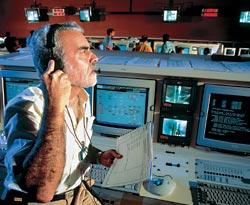 Руководитель полета Фредерик Энгстрём следит за подготовкой к первому старту ракеты «Ариан-5» в июне 1996 года. Запуск закончился аварией на 37-й секунде полета из-за ошибки в компьютерной программе