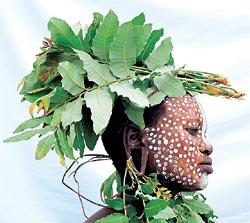 Девушки-сурма встречают новую луну, вплетая в волосы пучки травы и тонкие ветки. А вообще, прически женщин-сурма изумительны, так только африканки умеют себя «подать»
