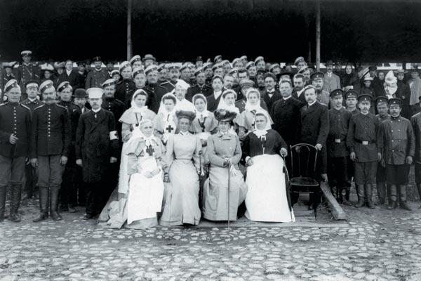 Княгиня Юсупова (в первом ряду вторая слева) вместе с персоналом санитарного поезда во время Русскояпонской военной кампании. 1904 год. Фото: ЦГАКФФД