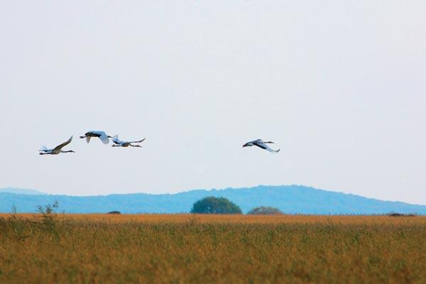 Песню «Журавли» можно было бы присвоить в качестве гимна Ханкайскому заповеднику. Здесь обитает 347 видов пернатых, а из представителей рода Grus встречаются четыре столь редких, что увидеть их в Японии и Корее считается доброй приметой. Японский (на фото) и даурский журавли гнездятся в заповеднике, стерх и черный останавливаются на пролете