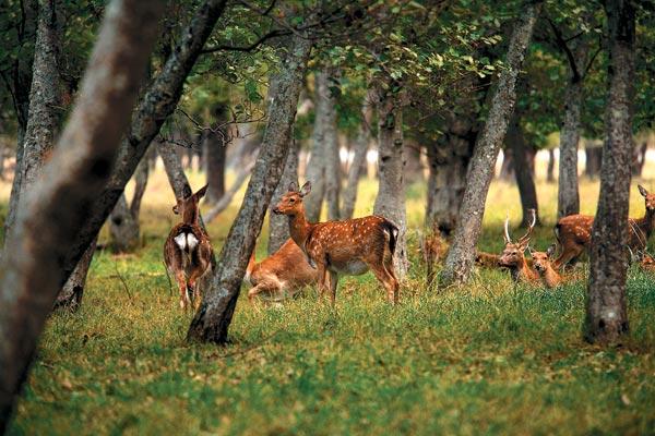 Когда-то пятнистый олень был самым распространенным копытным в Приморье. Теперь численность диких популяций сократилась. Зато во многих селах образовались своего рода фермы – за оградой на широкой территории пасутся «полудикие» стада Сervus nippon, при необходимости их подкармливают хозяева. Ну и туристам их показывают за умеренную плату