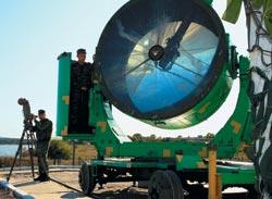 Техника, состоящая на вооружении у хасанского погран отряда на корейском участке границы, впечатляет. При помощи этого гигантского прожектора освещаются те участки российских прибрежных вод в Японском море, где радары обнаружили корейских нарушителей – ловцов кальмаров