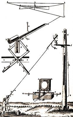 Но даже у лучшего из телескопов Галилея диаметр объектива составлял всего 37 миллиметров, и при фокусном расстоянии 980 миллиметров он давал очень бледное изображение. Это не мешало наблюдать Луну, планеты и звездные скопления, но увидеть в него туманности было затруднительно. Увеличить светосилу не позволяла хроматическая аберрация. Лучи разного цвета по-разному преломляются в стекле и фокусируются на разных расстояниях от объектива, отчего изображения объектов, построенные простой линзой, всегда окрашены по краям и тем сильнее, чем резче преломляются лучи в объективе. Поэтому с увеличением диаметра объектива астрономам приходилось увеличивать и его фокусное расстояние, а значит, длину телескопа. Предела разумного достиг польский астроном Ян Гевелий , построивший в начале 1670-х годов гигантский инструмент длиной 45 метров. Объектив и окуляр крепились к составным деревянным доскам, которые на канатах подвешивались на вертикальной мачте. Конструкция шаталась и вибрировала от ветра. Наводить ее на объект помогал ассистент-матрос, имевший опыт работы с корабельными снастями. Чтобы не отставать от суточного вращения неба и следить за выбранной звездой, наблюдатель должен был со скоростью 10 см/мин поворачивать свой конец телескопа. А на другом его конце стоял объектив диаметром всего 20 сантиметров. Еще немного дальше по пути гигантизма продвинулся Гюйгенс . В 1686 году он устанавливал объектив диаметром 22 сантиметра на высоком столбе, а сам располагался в 65 метрах позади него на земле и рассматривал построенное в воздухе изображение через окуляр, укрепленный на штативе.