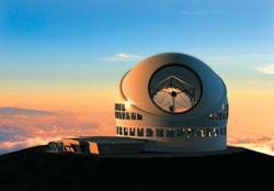 Гавайские острова , вершина горы Мауна-Кеа, 4145 метров над уровнем моря. Для пребывания на такой высоте требуется акклиматизация. На фоне меркнущей вечерней зари четкими силуэтами выделяются два огромных сферических купола. На одном из них медленно поднимается белое «забрало» шириной с трехполосное шоссе. Внутри – темнота. Вдруг прямо оттуда вверх бьет лазерный луч и зажигает в темнеющем небе искусственную звезду. Это включилась система адаптивной оптики на 10-метровом телескопе Кека. Она позволяет ему не чувствовать атмосферных помех и работать так, словно он находится в открытом космосе...