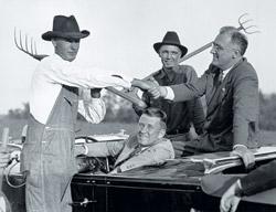 Октябрь 1932 года. Во время предвыборной кампании Франклин Делано Рузвельт всячески демонстрировал свою близость к простым фермерам. И не прогадал, получив на выборах большинство голосов. Фото: BETTMANN/CORBIS/FSA