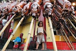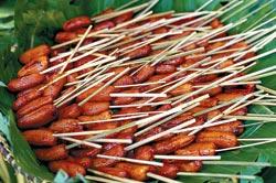 Говоря о мясных блюдах, нельзя не сказать о главном угощении праздничного и особенно свадебного стола – лечоне. Название его указывает на испанское происхождение блюда (от испанского leche – «молоко»). Это целиком зажаренный на углях молочный поросенок. В Кессон-Сити, который вместе с другими 17 городами и муниципалитетами входит в состав мегаполиса Большая Манила, рестораны и кухни, готовящие лечон, занимают целый квартал, и каждое из этих заведений в предпраздничные или выходные дни продает до сотни жареных поросят . Популярность лечона настолько широка, что этому блюду посвящен большой праздник – Парад поросят. Он ежегодно проходит в городе Балаян провинции Батангас 24 июня – день, который для католиков всего мира связан с именем Иоанна Крестителя. Главное событие праздника – «шествие» по улицам города жареных поросят, наряженных в забавные костюмы. Однако это торжество длится недолго: после парада поросят съедают, а заодно определяют лучшего повара.