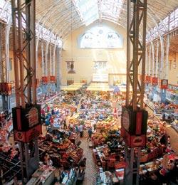 Если Майдан – сердце Крещатика, то Бессарабская площадь с главным киевским рынком, несомненно, его брюхо. Рассказывают, что ни по чему так не убиваются бывшие киевляне в Новом Свете, как по творожку «как на Бессарабке» и прочим украинским эксклюзивам. На Бессарабском рынке почти все они высшего качества, что подтверждается их ценой. Вообще-то цены на всех киевских продуктовых рынках в этом году обогнали московские на 30– 50% – и это на Украине, где земля гудит от плодородия и все растет,– киевляне глазам своим не верят. Но Бессарабка и в этом отношении чемпион – килограмм колбасы домашней выделки здесь стоил этим летом $20.