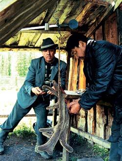 Каждую осень, после окончания периода турнирных боев и спаривания, самцы-олени сбрасывают рога. Процесс этот начинается с того, что место соединения рога с пеньком становится непрочным, надламывается и рог отваливается. Но уже весной у самцов на вершине каждого пенька возникает хрящевая шапка, покрытая кожей с короткими волосками. Верхняя часть шапки растет и постепенно превращается в молодые рога – мягкие, бархатистые, пронизанные кровеносными сосудами и нервами, так называемые панты. По мере роста они твердеют снизу вверх, пока полностью не превращаются в кость, после чего кожа на них лопается и спадает, причем на твердой роговой поверхности сохраняется рисунок прежних сосудов. По ветвистости рогов можно определить возраст оленя: на втором году жизни рог состоит из одной ветви – спицы, на третьем – появляется одно ответвление, с возрастом количество отростков увеличивается, но по достижении полного расцвета сил прибавка прекращается. У старых оленей рога становятся тоньше и слабее, а число ветвей уменьшается.