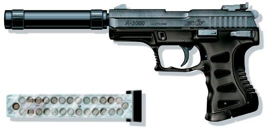 Имитация в «пневматике» таких приспособлений, как дульные тормоза или глушители, позволяет придать оружию дополнительные свойства. Дульная насадка может, например, окрашивать пули светящимся составом, имитируя стрельбу трассирующими пулями. В российском пистолете A-3000LB «Скиф», сделанном под «Вальтер» Р99, насадку в форме глушителя использовали не менее остроумно. Ею прикрыли удлиненный ствол, повысивший кучность стрельбы, а вот в огнестрельном оружии глушители баллистику, увы, не улучшают.