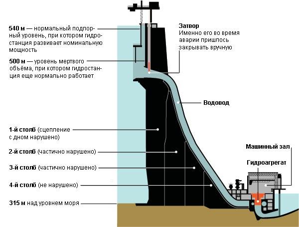 Конечно, персонал обязан был, зафиксировав столь сильную вибрацию, остановить 2-й агрегат. Однако, возможно, что он просто о ней ничего не знал: система непрерывного виброконтроля, установленная лишь в 2009 году, не была полностью введена в эксплуатацию – показания датчиков лишь сохранялись для истории, как в «черном ящике» самолета. Другой порок системы управления станции – не было предусмотрено автоматическое аварийное закрытие затворов на гребне плотины, через которые вода поступает в турбинные водоводы. Вручную же полностью закрыть затворы удалось лишь к 9:30. То есть почти полтора часа в разрушенный машинный зал продолжала хлестать вода, заливая нижние его этажи, где в момент аварии находилась почти вся утренняя смена станции.