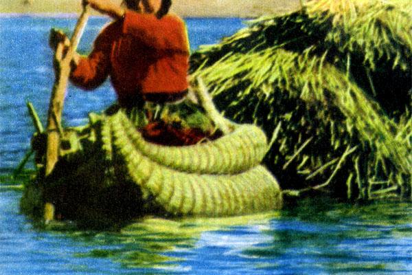 ...Дороги в Андах не только вызывают головокружение бесконечными виражами, не только стискивают голову обручем боли из-за нехватки кислорода, здешние дороги не имеют покрытия, и путешественник глотает добрых сто граммов пыли на каждом километре пути. Но все это позади. Сейчас мы плывем на моторной лодке к тростниковым островам. Правда, и тут не обошлось без трудностей: после нескольких сотен метров на винт наматывается пук травы, пришлось остановиться и очищать его.