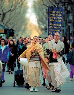 Индуизм – религия не прозелитирующая: абсурдно распространять веру, которую иноземцу все равно нельзя принять. Скорее, можно говорить об интересе – или любопытстве – представителей других конфессий к индуистской вере, чем об интересе индусов к ним. Началом знакомства двух миров можно считать известное выступление гуру Свами Вивекананды на чикагском Всемирном конгрессе религий в 1893 году. Утверждая одинаковую истинность всех религий, предостерегая от следования догматам исключительно «своего» вероучения, Вивекананда призывал к раскрытию духовной основы, общей для всех, и к «служению тому богу, которого несведущие зовут человеком», ибо, согласно веданте, человеческая душа есть божественная сущность. Моральный и социальный посыл такой позиции привлек внимание безусловных «властителей дум» конца позапрошлого столетия: Ромена Роллана, Олдоса Хаксли, Моэма и Ишервуда. Западная интеллигенция всерьез увлеклась индуизмом, прежде всего философией и – в меньшей степени – мистической практикой. Впоследствии это сыграло свою роль и в поддержке борьбы Индии за независимость. Куда более массовым и живописным оказался всплеск интереса к индийской духовности на Западе в 1960—1970 годы. По миру шел девятый вал молодежного движения, и Индию захлестнули разноперые толпы хиппи. Интересы «детей цветов» были до чрезвычайности многообразны – от протеста против вьетнамской войны и «пластмассового одиночества» в сытых странах до жажды доступной наркоты и свободной любви. Многое из этого мерещилось им в обрядовой стороне индуизма. К Индии обратились и творцы молодежной контркультуры тех времен: битлы отправились медитировать в ашрам (обитель) Махариши Махеш Йоги, Аллен Гинзберг, Джек Керуак и другие лидеры битников склонились перед другими гуру. Страна вначале оторопела при виде «белых сахибов», простирающихся перед индусскими святынями, но быстро опомнилась. Спрос вызвал предложение. На Запад, прежде всего в Америку, в Калифорнию, потянулась целая череда гуру в одеяниях шафранового цвета. Имя им было легион, но одному привелось сыграть историческую роль – по крайней мере в отношении нашей страны. Прабхупада Бхактиведанта Свами прибыл в ту же Калифорнию в 1965 году и вскоре возглавил там Международное общество сознания Кришны, организованное самими американцами. В 1971 году, уже признанный «международным авторитетом» гуру посетил Москву, где посвятил в брахманы (!) первых отечественных кришнаитов. Дело в том, что кришнаиты простейшим способом устранили препятствие на пути обращения в индуизм, пересмотрев кастовую иерархию. Для них брахман – это просто индивид, наиболее продвинутый в духовном плане. Степень продвинутости определяют они сами. Кришнаитов в СССР сначала преследовали, объявляя то экстремистской сектой, то еще чем-то похуже. Потом в стране наступили перемены, стало вовсе не до них, и они получили возможность беспрепятственно отправлять свои задорные массовые ритуалы.